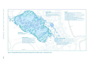 Another temporary hessian fence round a nearby demolition site bore a WA Government notice that read: “The Aboriginal Burial Ground is Under Repair. Rottnest Island was a native prison from 1838 to 1931. Thousands of Aboriginal leaders and warriors were imprisoned on the island during this period and more than 370 remain in the Burial Ground in the largest unmarked Burial Ground in Australia. PLEASE RESPECT THIS SACRED PLACE AT ALL TIMES”. A detailed map showed landscaped gardens, an “entrance look-out and shelter”, a viewing terrace”, “sculptural sentinels” and “reflection spaces”.